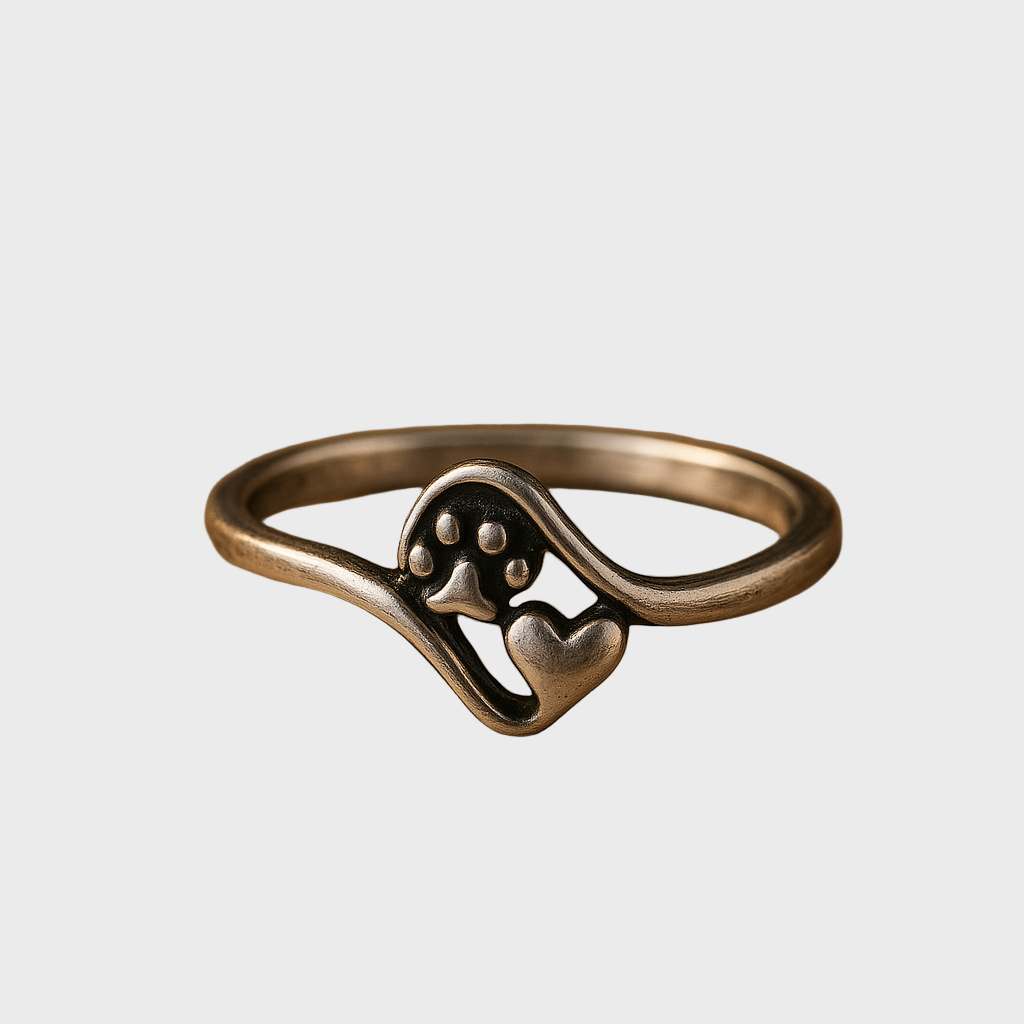Anello Vintage in Argento Sterling con Motivo di Zampa e Cuore