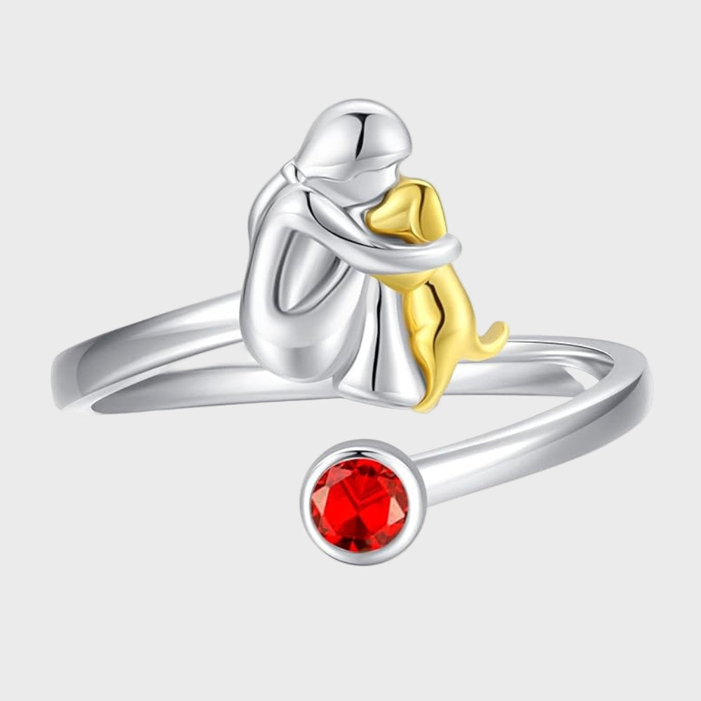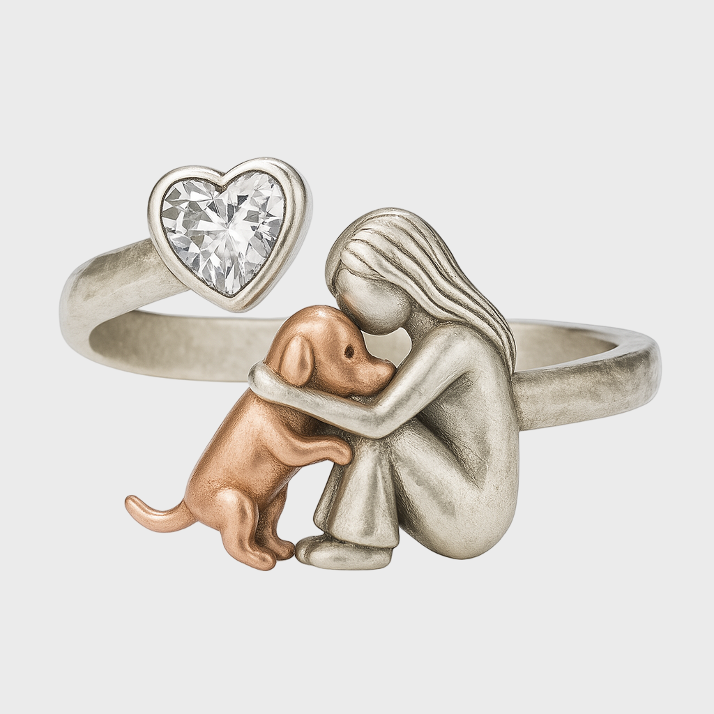 Anello Regolabile in Argento Sterling con Motivo Cane e Ragazza – Un Simbolo di Amore